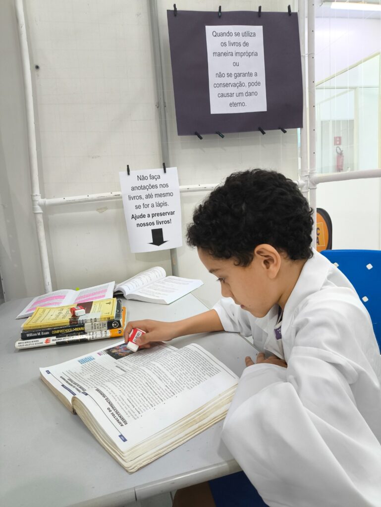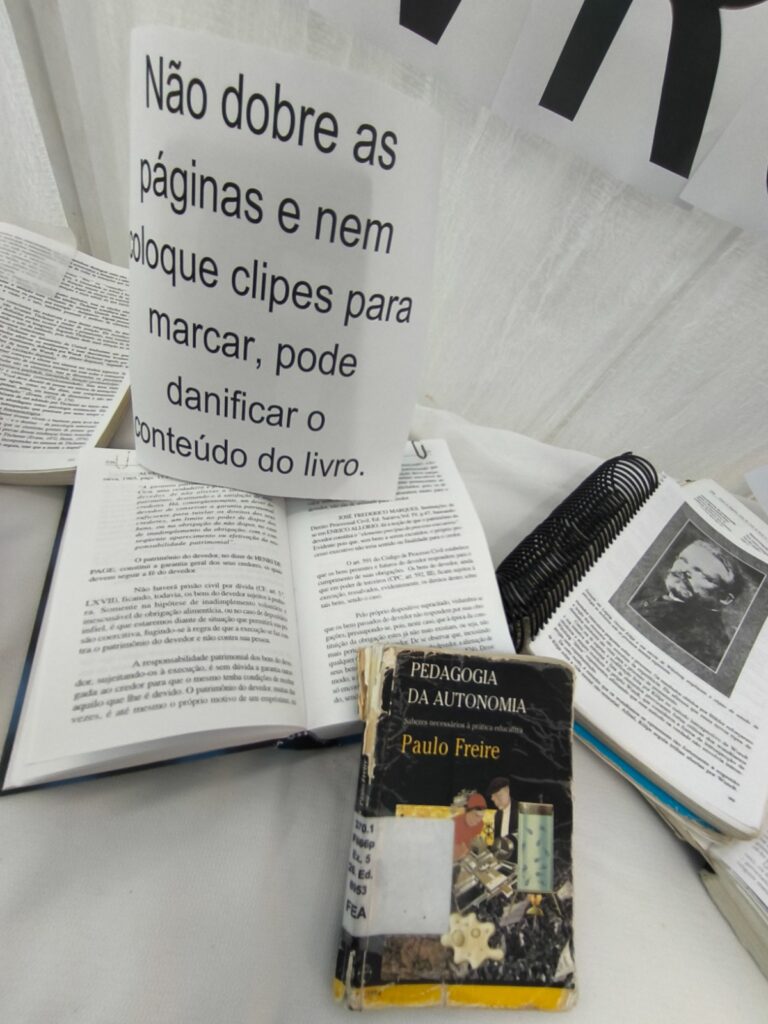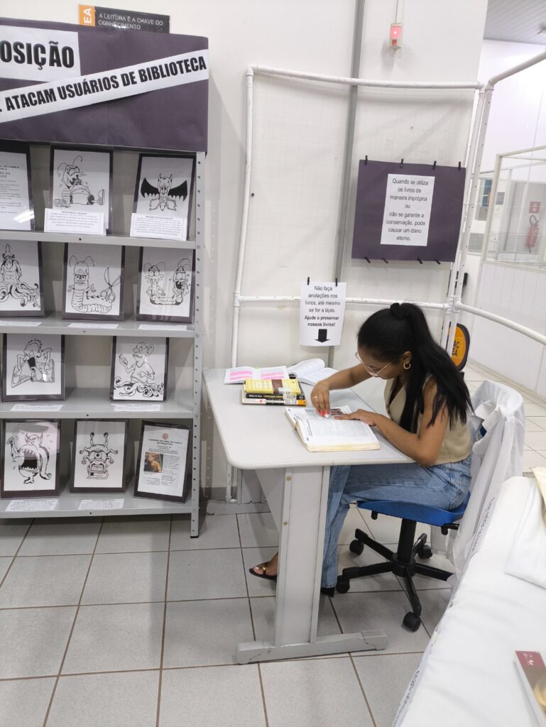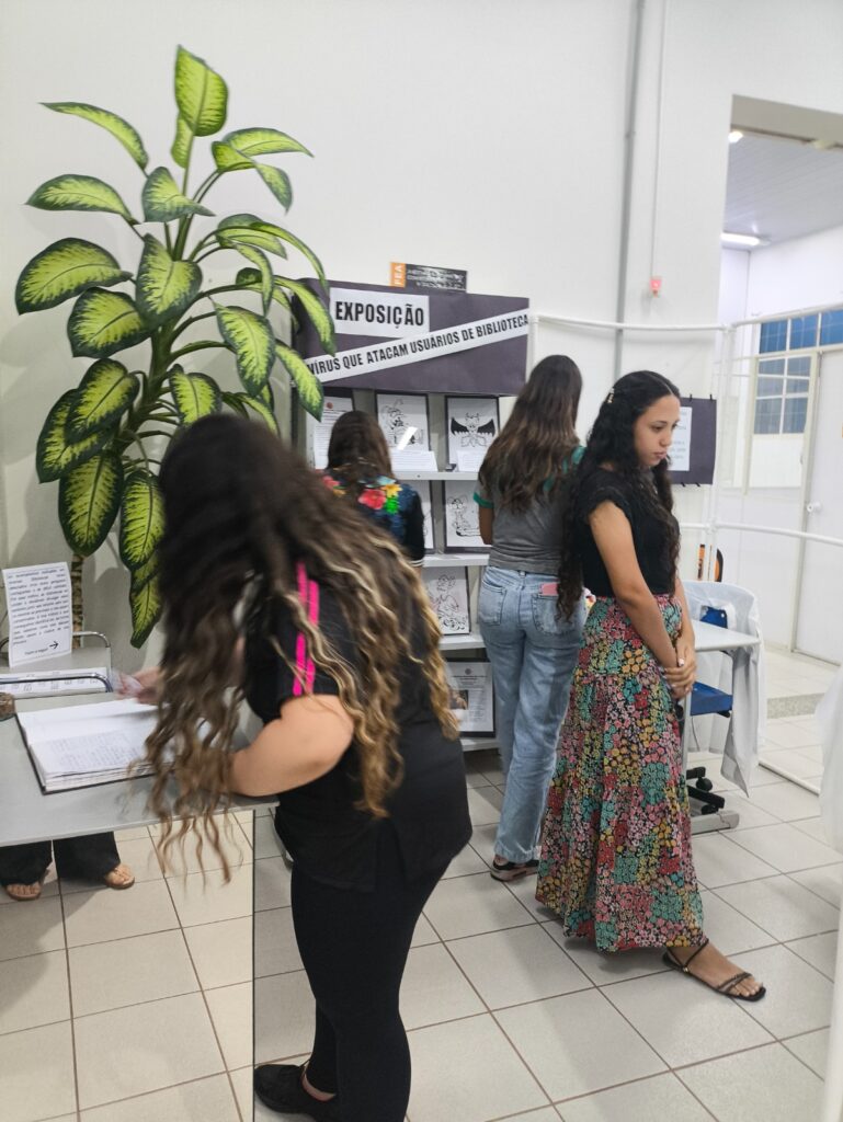 Durante toda a semana, os visitantes puderam apreciar as exposições “UTI dos Livros” e “Os vírus que atacam usuários de Biblioteca”, releituras de desenhos de Marcos Fabrício de Moura Almeida. As mostras integraram a Campanha de Conscientização e Preservação do Acervo, com o objetivo de promover o cuidado e a conservação do material bibliográfico, garantindo sua longevidade e acesso para as futuras gerações.