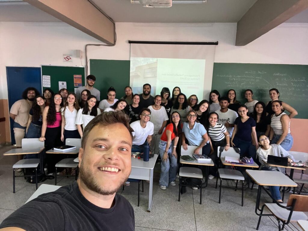 No dia 23 de Março, a Professora Dr. Vera Smolentzov e o Professor Me. Caio Nicolau promoveram uma aula integrativa com as disciplinas de Sociologia e Psicologia – ciência, atuação e interdisciplinaridade para discutir com a turma do 1° Semestre sobre Políticas Públicas de Saúde, SUS e SUAS e educação no Brasil. Na oportunidade também foi constituído um espaço de convivência e sociabilidade, promovendo o fortalecendo entre os laços entre os estudantes do curso de Psicologia.