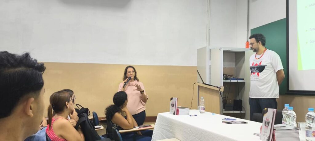 A palestra e a sessão de autógrafos foram realizadas durante as disciplinas de “Arte, identidade e multiculturalismo” ministrada pela professora Patrícia Soares e a disciplina “Sociologia, Antropologia e Cultura Negra e Indígena”, ministrada pela professora Angela Liberatti. No final da palestra foi feito um agradecimento especial aos autores pela diretora pedagógica professora Simone Pantaleão Macedo.