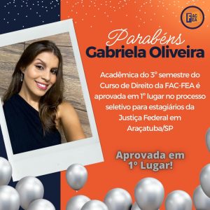 Acadêmica de direito da FAC-FEA é aprovada em 1º lugar em dois importantes processos seletivos Leia Mais » 21/03/2024